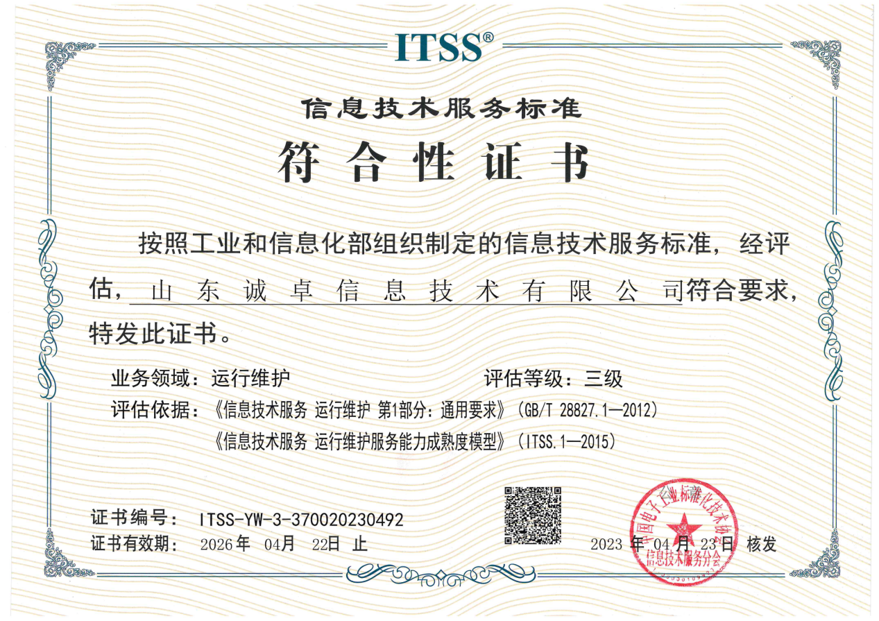 ITSS信息技术服务标准符合性证书
